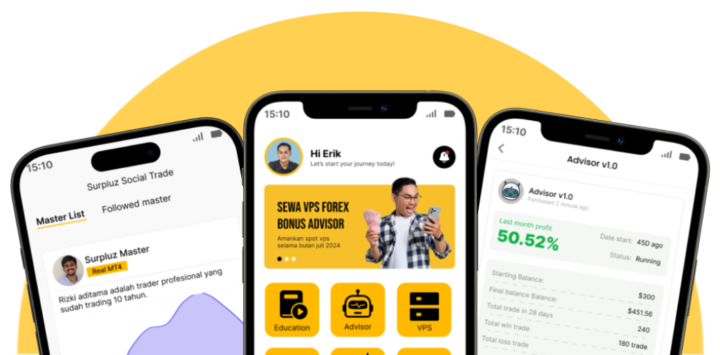 Lebih dari sekadar aplikasi, Surpluz menghubungkan trader satu sama lain, menciptakan komunitas yang saling mendukung. Anda tidak hanya dapat berbagi pengalaman dan strategi dengan sesama trader, tetapi juga mendapatkan bimbingan dari penasihat berlisensi yang siap membantu Anda meraih tujuan trading dengan lebih percaya diri.